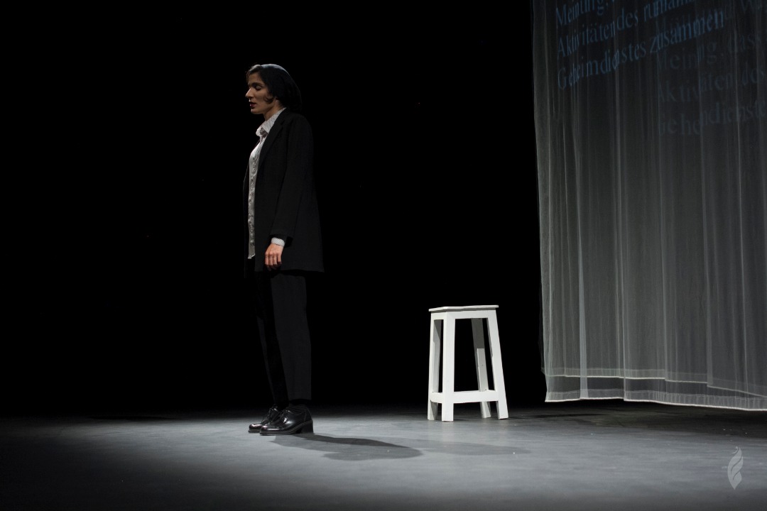 Notably, “Days on the Way” is performed on an all-black stage, with the audience seated opposite. The unique staging involves high-resolution images projected on the wall by a beamer, simultaneously filmed by the actor. In this innovative production, I served as the researcher, co-dramaturge, director, and one of the actors. Performers engage in a self-observing style of playing, with their stories presented in a way that a cameraman captures them throughout the performance, creating a live visual narrative through a projector. This multifaceted role adds a layer of self-reflection to the storytelling process, enhancing the audience’s immersive experience.