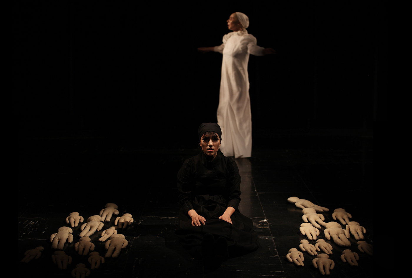This production, written by Niloufar Nedaei and directed by me, was a free and minimalist interpretation of Federico García Lorca’s Yerma. By stripping away folkloric and regional elements, we relocated the play into a timeless, placeless setting, focusing on universal oppositions such as fertility/sterility and femininity/masculinity.The staging emphasized stark contrasts: Yerma in white opposite a childlike figure in black, with dolls symbolizing unborn children. Stylized acting techniques, biomechanical movement, and abstraction replaced traditional narrative structure, inviting the audience to focus on conceptual tensions rather than linear storytelling.Performed by Yalda Sarafi and Anita Alimadadi, this experimental adaptation aimed to distill Lorca’s text to its essential themes. It stood out for its bold visual language and daring use of minimalism, marking an important early step in my journey as a director.